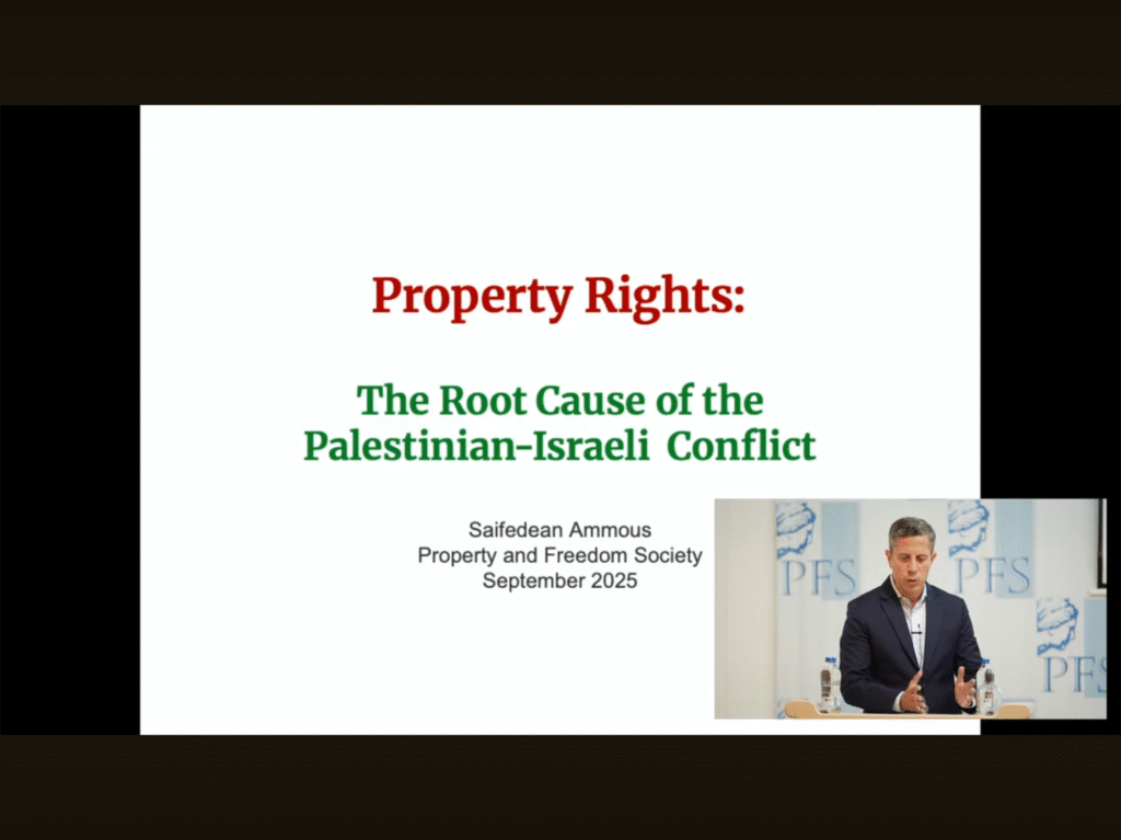 Saifedean Ammous om problemerne i Mellemøsten. Tilbage til Rothbard – ejendomsret er grundlaget for fredelig sameksistens. Når ejendomsretten ikke respekteres følger konflikter.